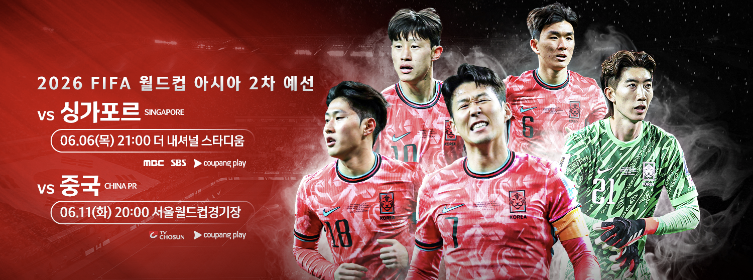 2026 북중미 월드컵 예선 6월 11일 화요일 TV조선과 쿠팡플레이를 통해 생중계됩니다.